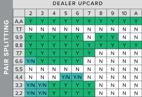 - Y/N (Split only if): We only divorce under certain circumstances. For example, we split pairs of 2, 3 or 7 if the dealer has cards of 2-7. We split a pair 6 if the dealer has cards of value 2-6. Split pair 9 if the dealer has 2-6 or 8-9.