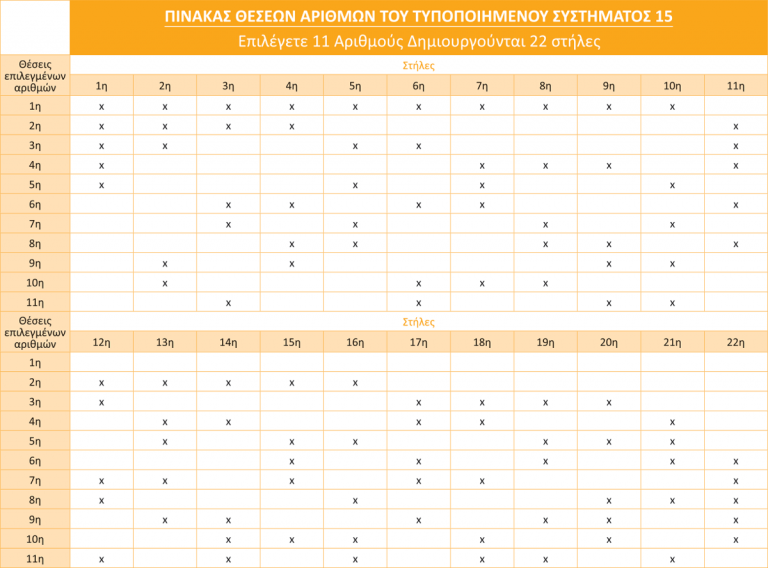 System 15 is an efficient option for the Joker game. You choose 11 numbers and 22 columns are created at a cost of ₹11.00. The probability of success is 4.76%. The table below shows the positions of the numbers and the columns created, offering a strategic approach to your game.